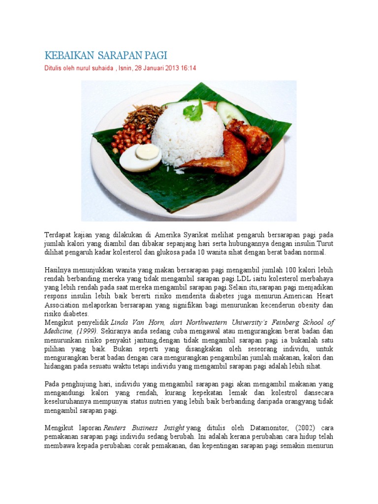 8 Kebaikan Dan Kepentingan Mengambil Sarapan Pagi Pdf