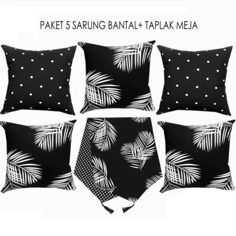 Jual Sarung Bantal Sofa Hitam Daun 5 Pcs 50x50 Cm Taplak Meja Shopee Indonesia